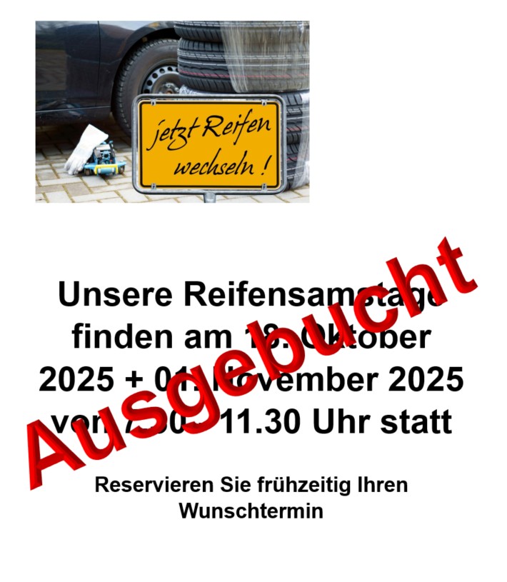 Am 18. Oktober 2025 + 01. November 2025 finden unsere Reifensamstage statt.